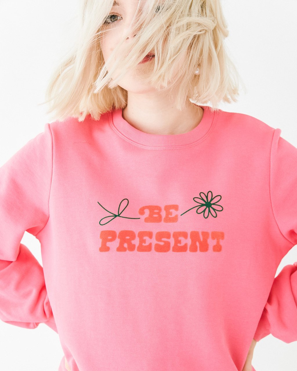There’s no better way to be present than to be present in this sweatshirt. It’s got the slightest cropped length, balloon sleeves, and a retro-inspired design that’ll remind you to live in the moment.