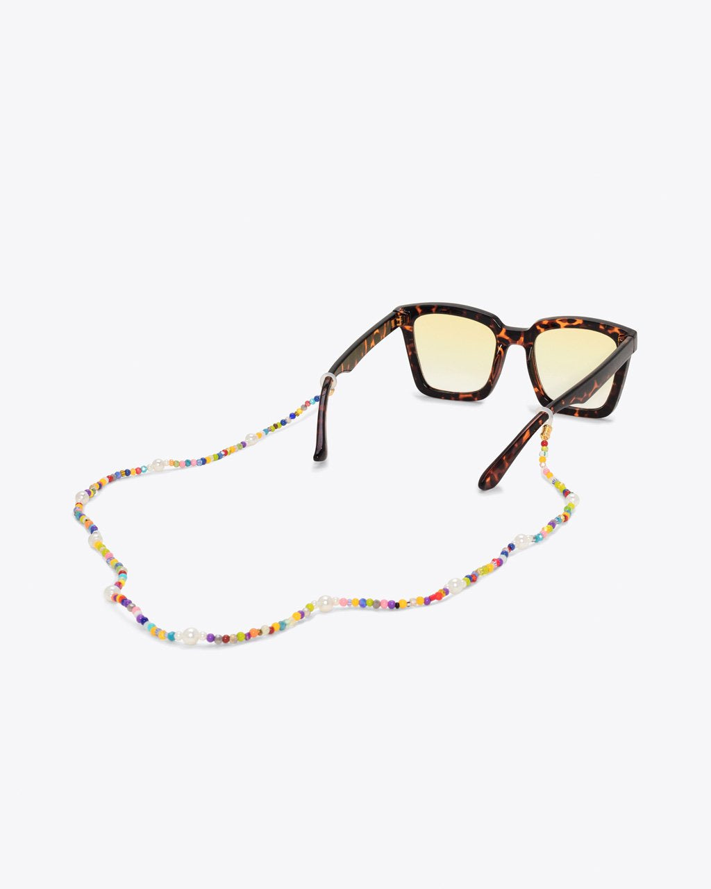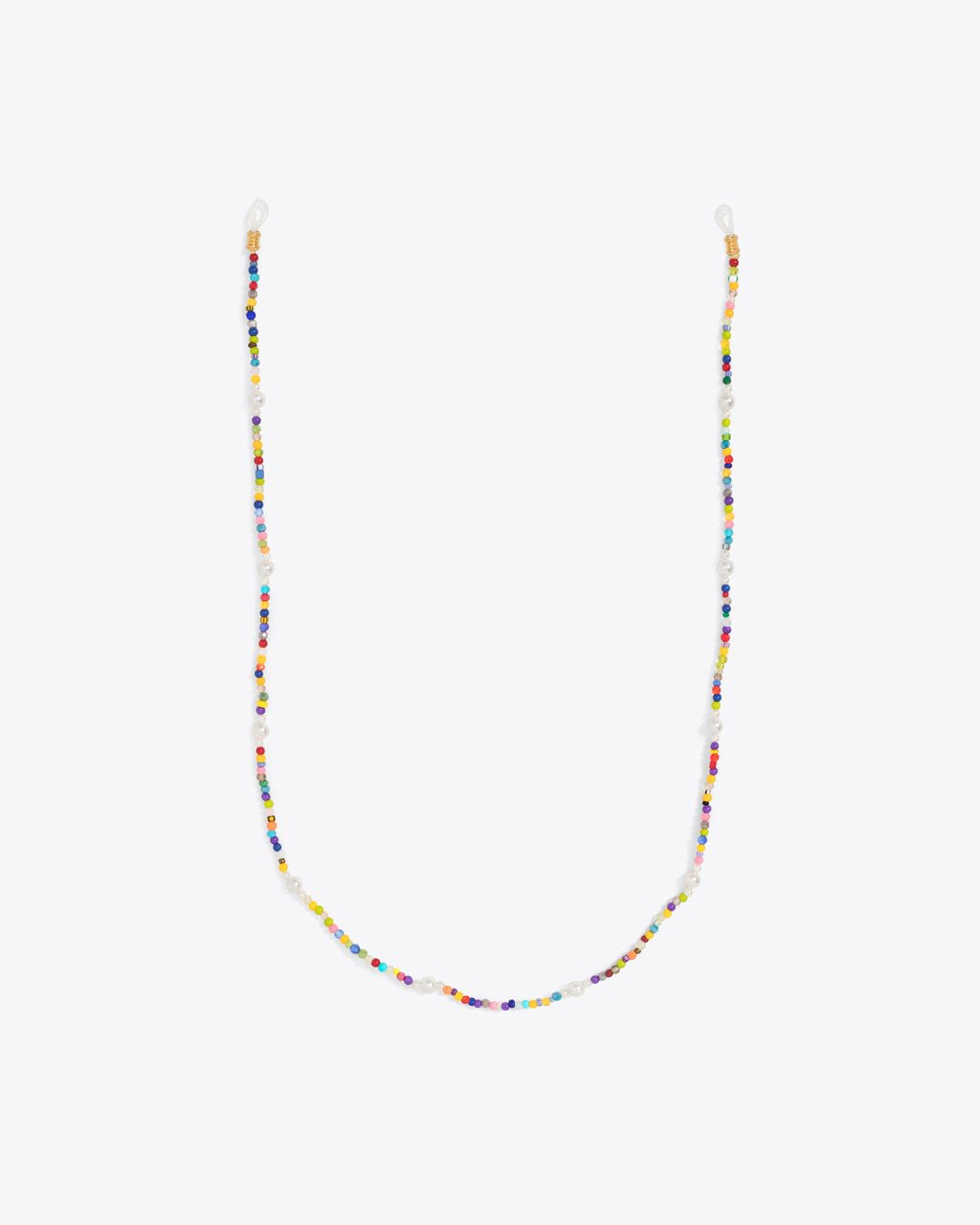 Yes, yes, yes. Commit to the glasses chain this season. By Luiny, this one is handmade in NYC with pearls, glass beads, crystal beads, and African trade beads.