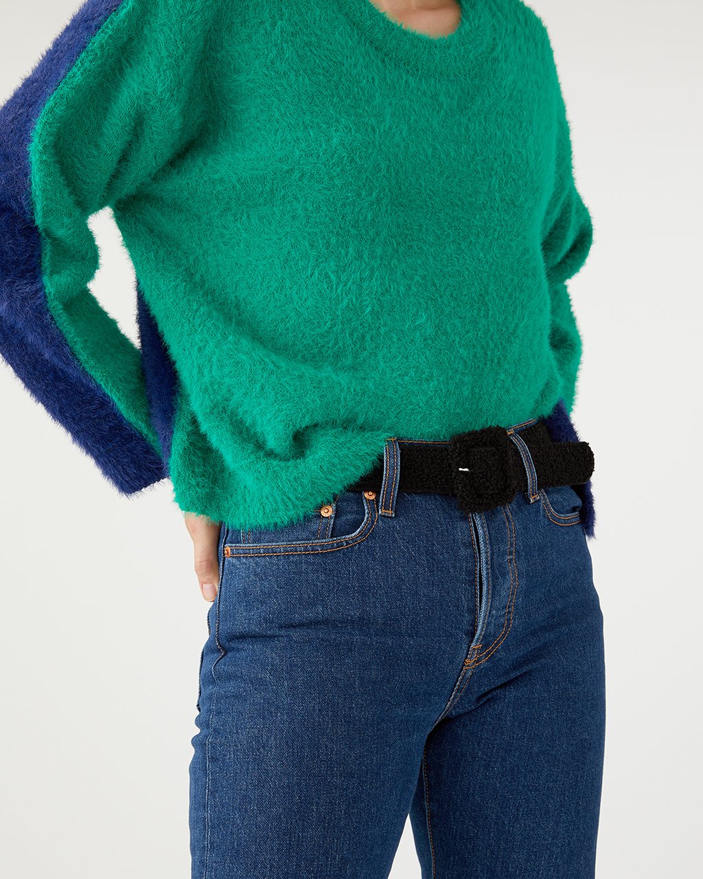 Not sure about that outfit? Throw a belt on it! With fuzzy black sherpa and a square buckle, this one from Compañía Fantástica is sure to tie your look together (figuratively and literally).