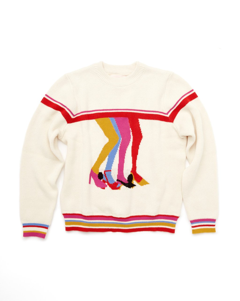 No, boogie shoes aren’t required when you wear this sweater. They are highly recommended, though. This knit sweater is made with a super soft cotton-cashmere blend and has a design that has been known to induce symptoms of disco fever.