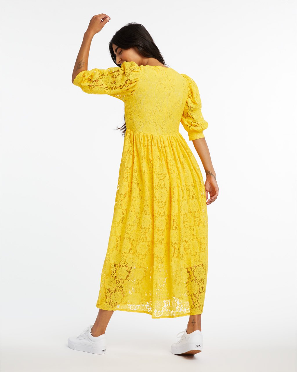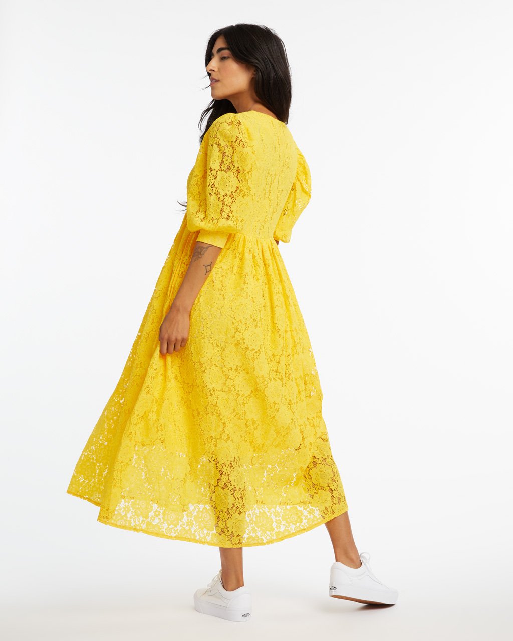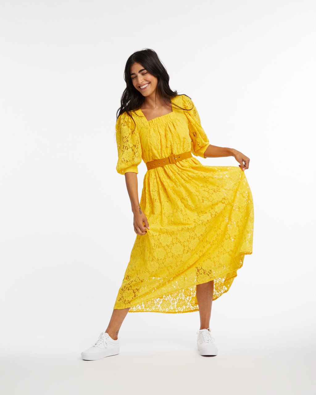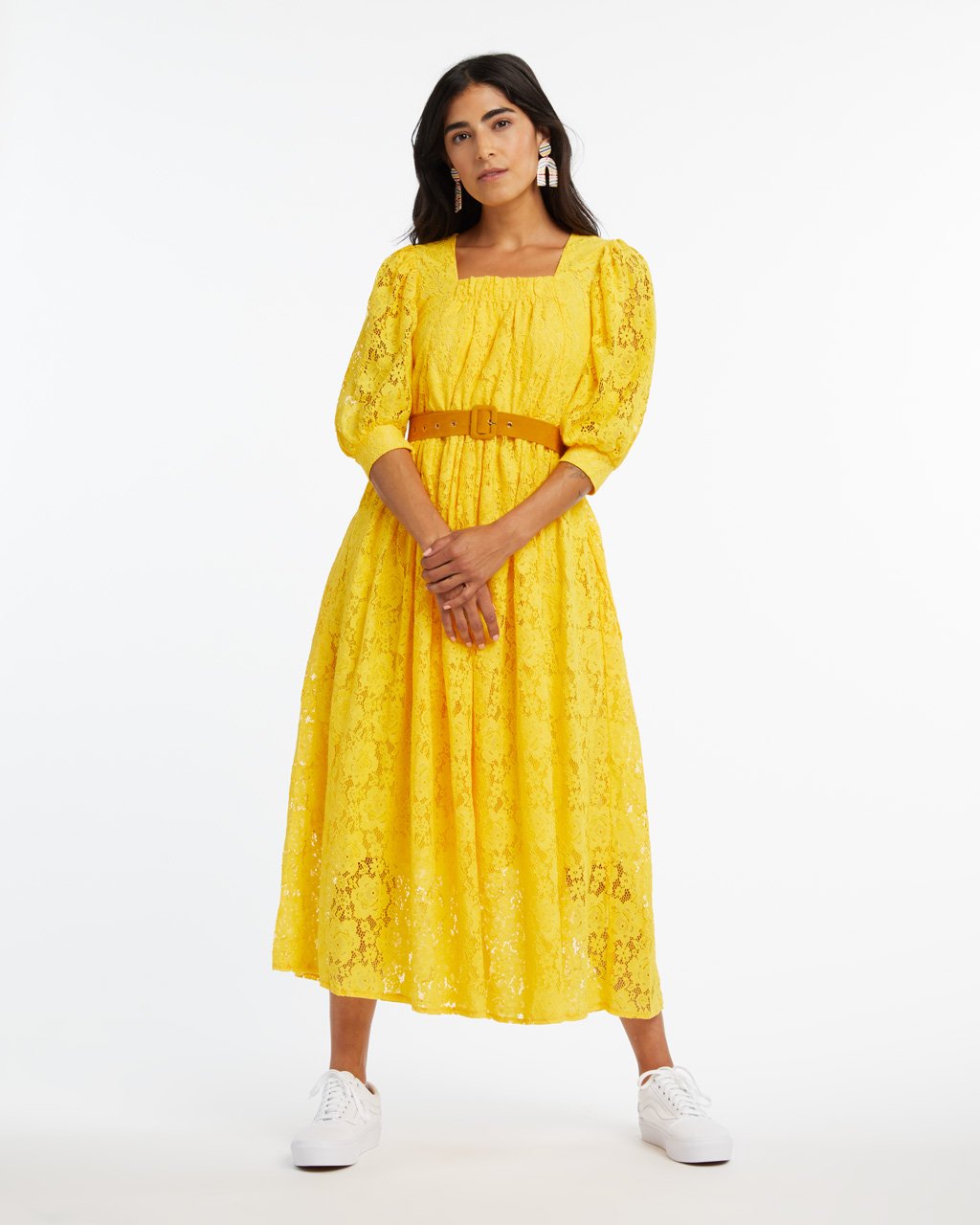 An abridged list of things we love: the color yellow, lace, pockets. Coincidentally, this midi dress from Sister Jane is yellow, made of lace, and wait for it….has pockets! It’s a match made in heaven (or in their studio in London, rather).