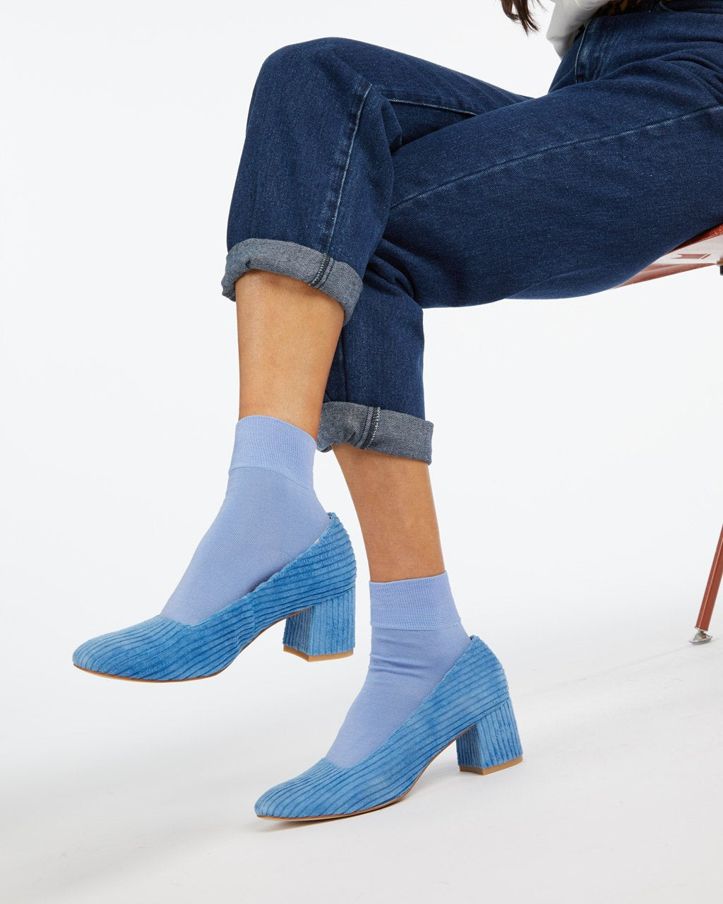 Introducing Collen, a rich cord mid-heel with small block heels. Wear with frayed culottes or offset with a tonal maxi dress.