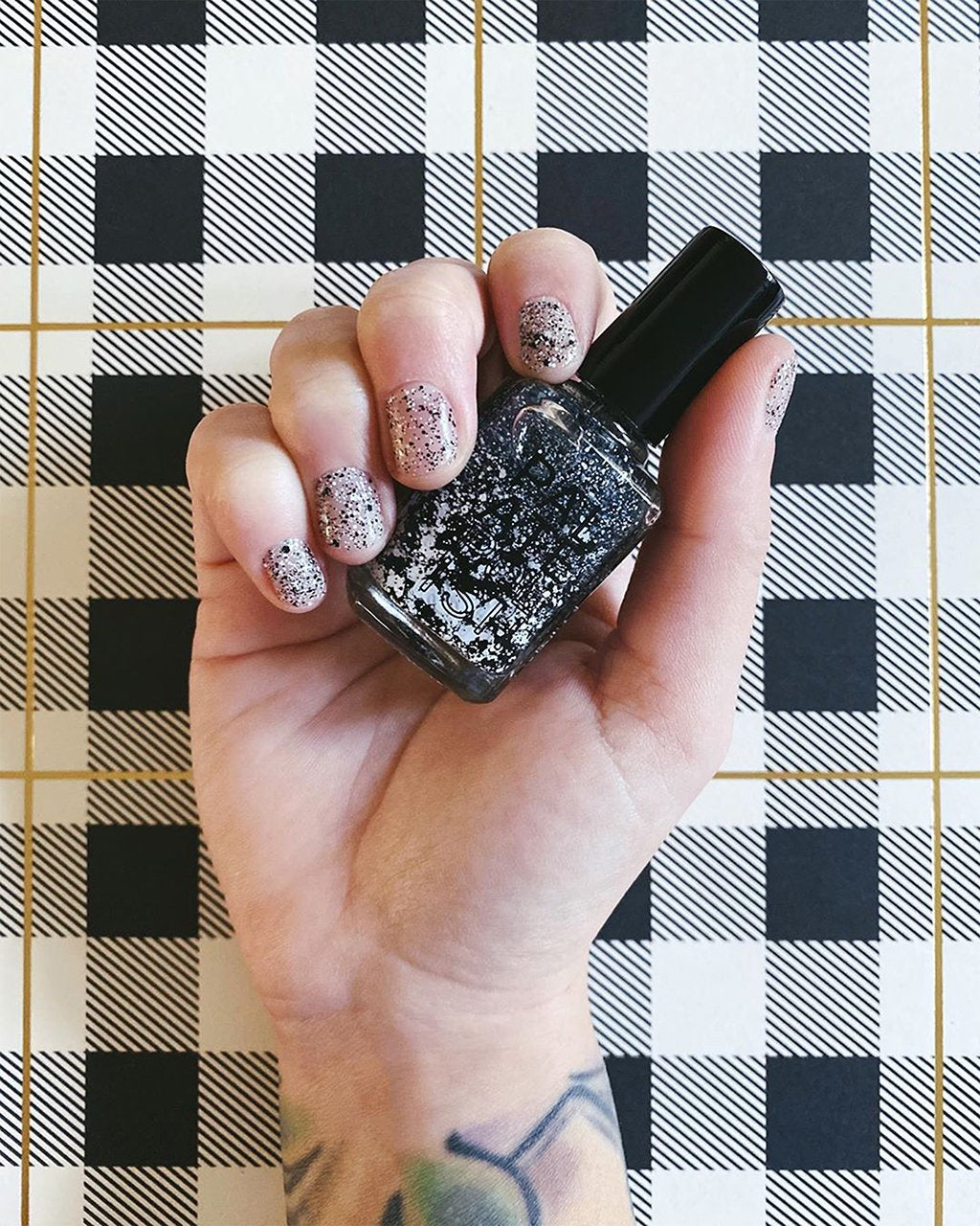 Get ready to absolutely nail it with this nail polish from Palate Polish. With clear polish and chunky black and white glitter, this polish is vegan, cruelty-free, and made without the typical toxic ingredients found in nail polish.