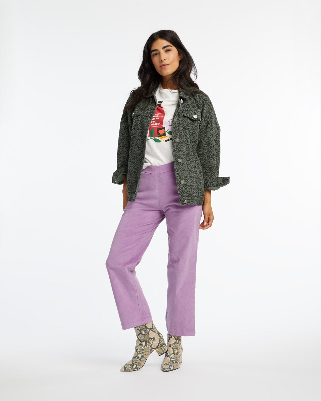 Hit the right cord. These corduroy pants from Wild Pony have a pretty lilac color, side pockets, and a slightly cropped length that hits just above the ankle. Dress them up with a blazer or down with your favorite graphic tee…or better yet, do both at once!