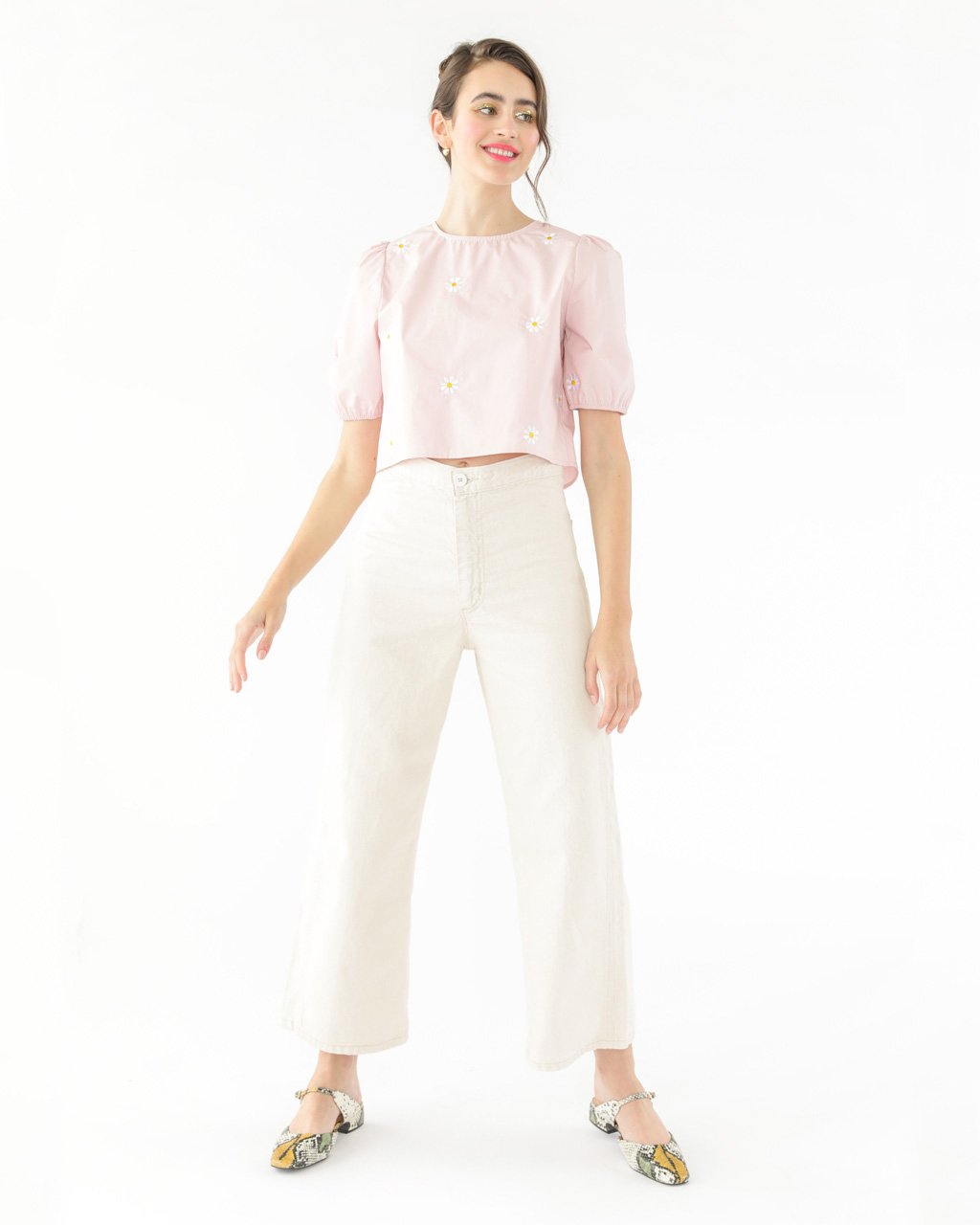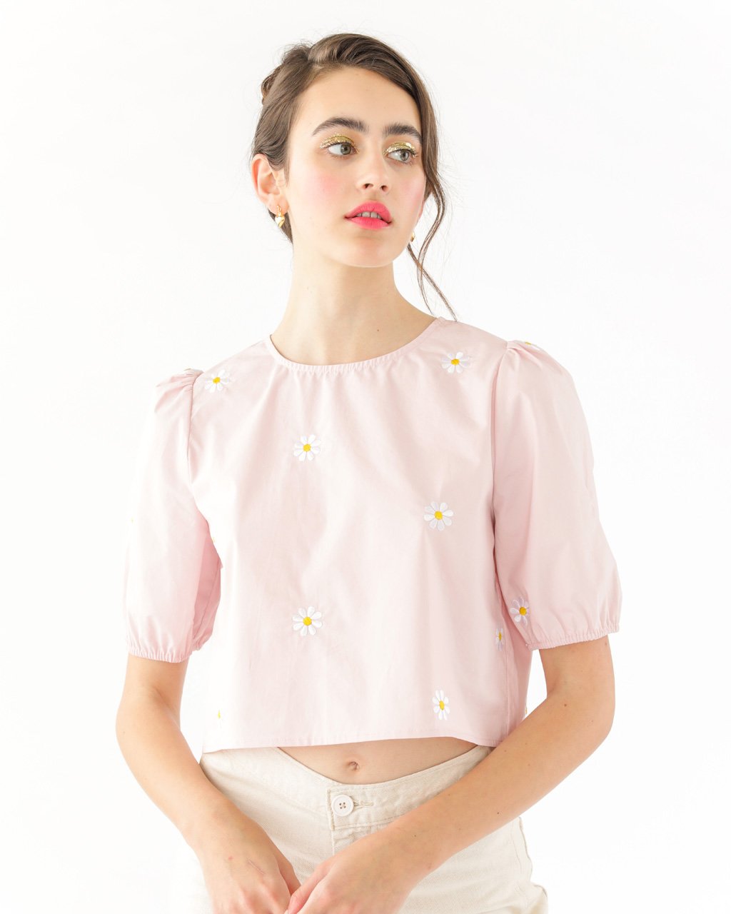 There’s just something about pastel pink mixed with embroidered daisies mixed with puff sleeves. This top from Sister Jane also has a cropped length and zipper closure.