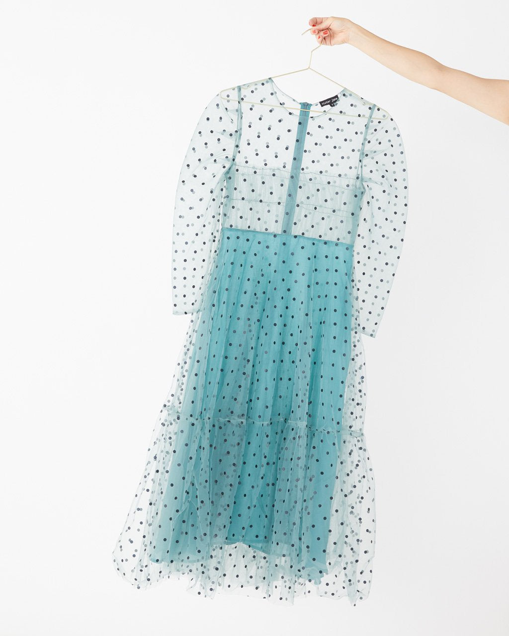 We don’t want to dream about anything but this dress from Sister Jane. With sheer green mesh, polka dots, and lining from the waist down, sweet dreams are made of this.