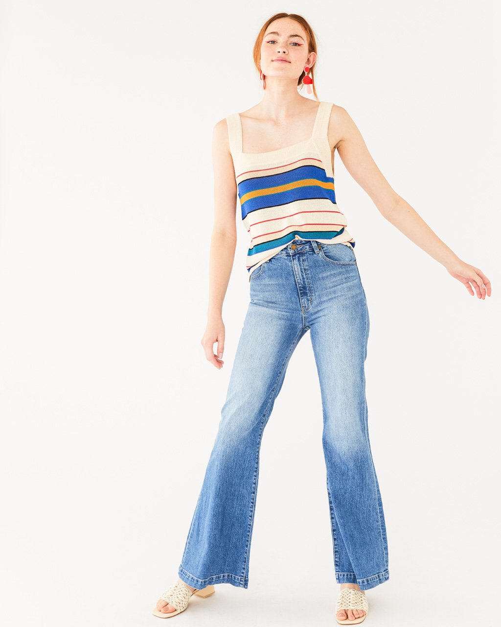 We love a good pair of flares and we don’t care who knows! This pair from Rollas has a bit of stretch, a high waist, and the most flattering angled back pockets.