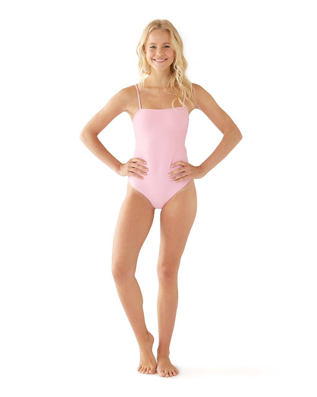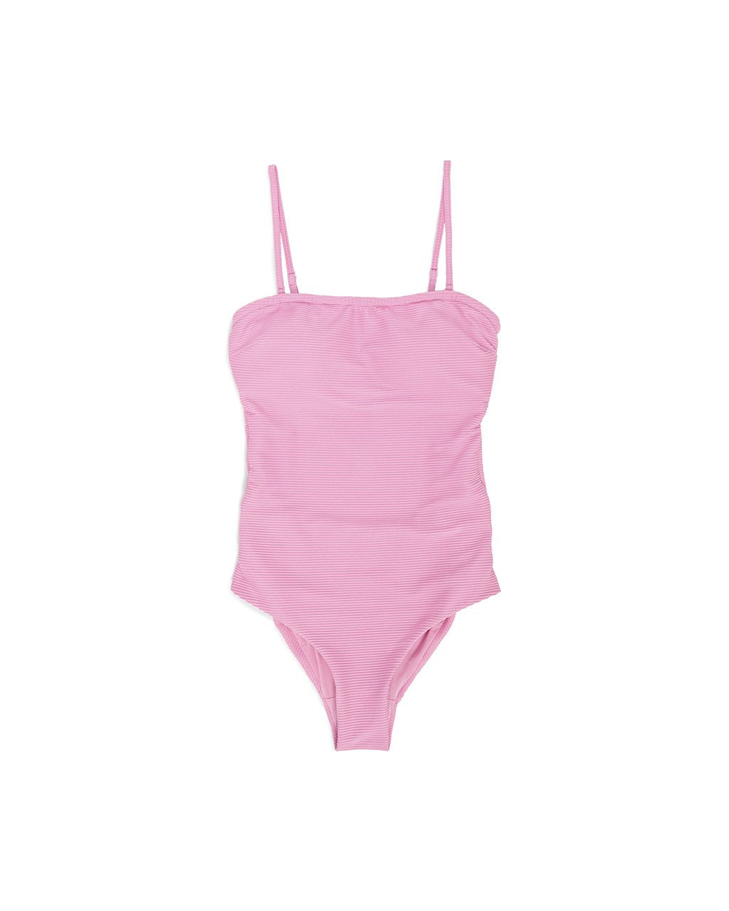 This one-piece from Onia is the best kind of old school. Like vintage refrigerators or drive-in movies. It’s got adjustable spaghetti straps, a flat neckline, a really fun subtle ribbed texture, and a really cute cut-out back! So it might even be better than vintage refrigerators and drive-in movies.