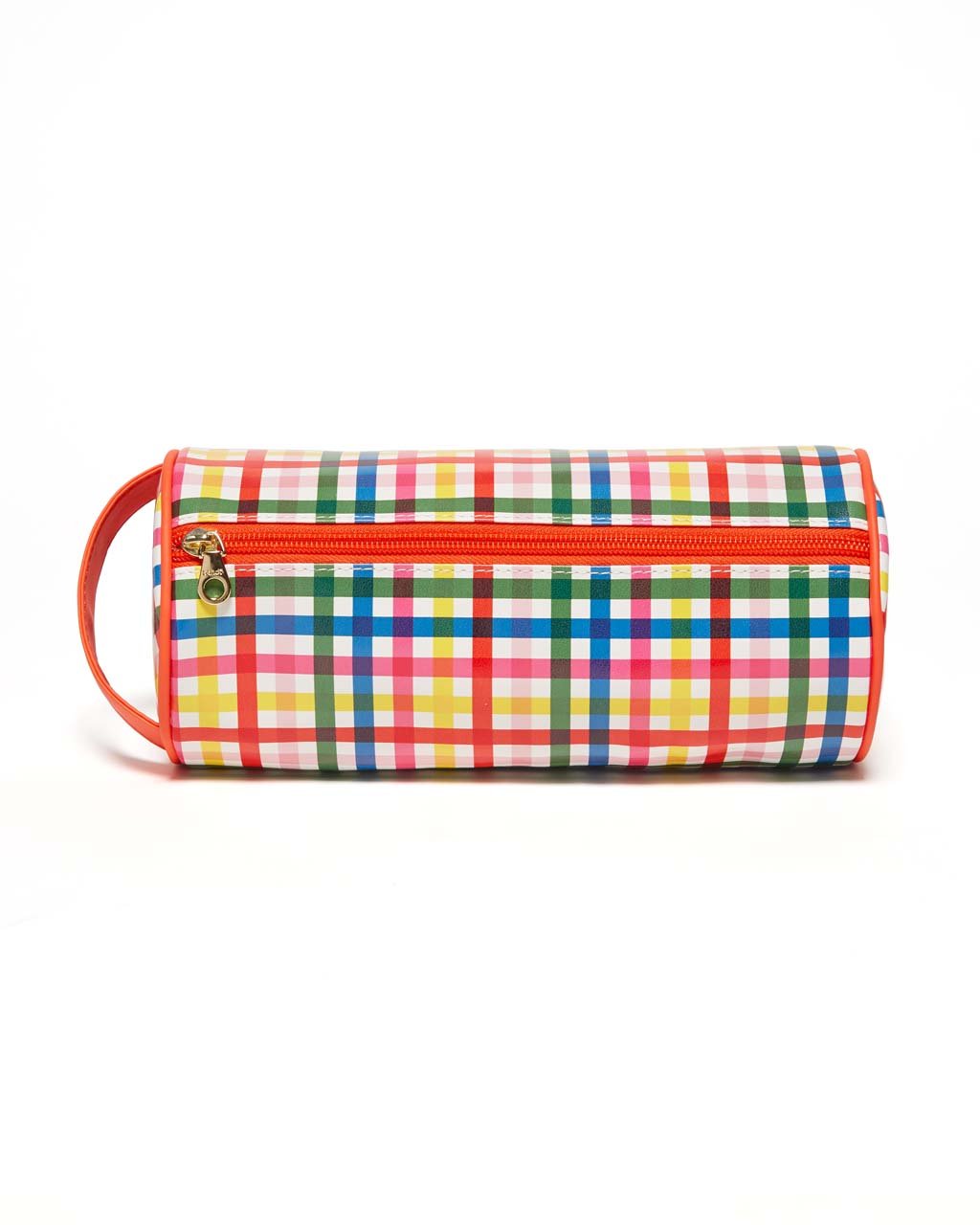 The newest way to get it together in style. This update on our get it together pouch has a cylindrical shape, is perfect for writing utensils or makeup (or you know, abstract concepts like love and gratitude), and has a strap on the side for easy carrying.