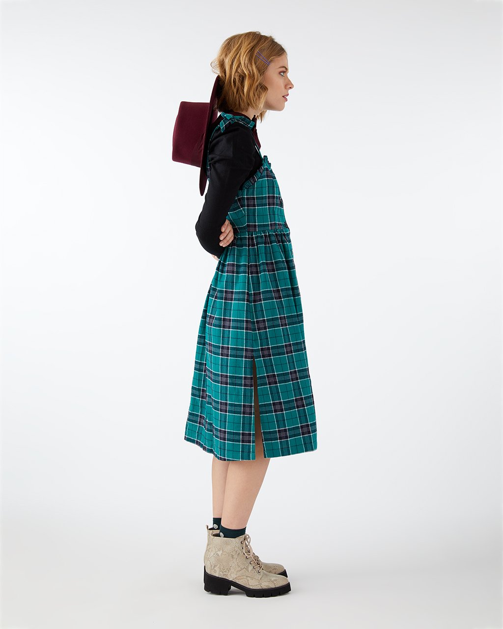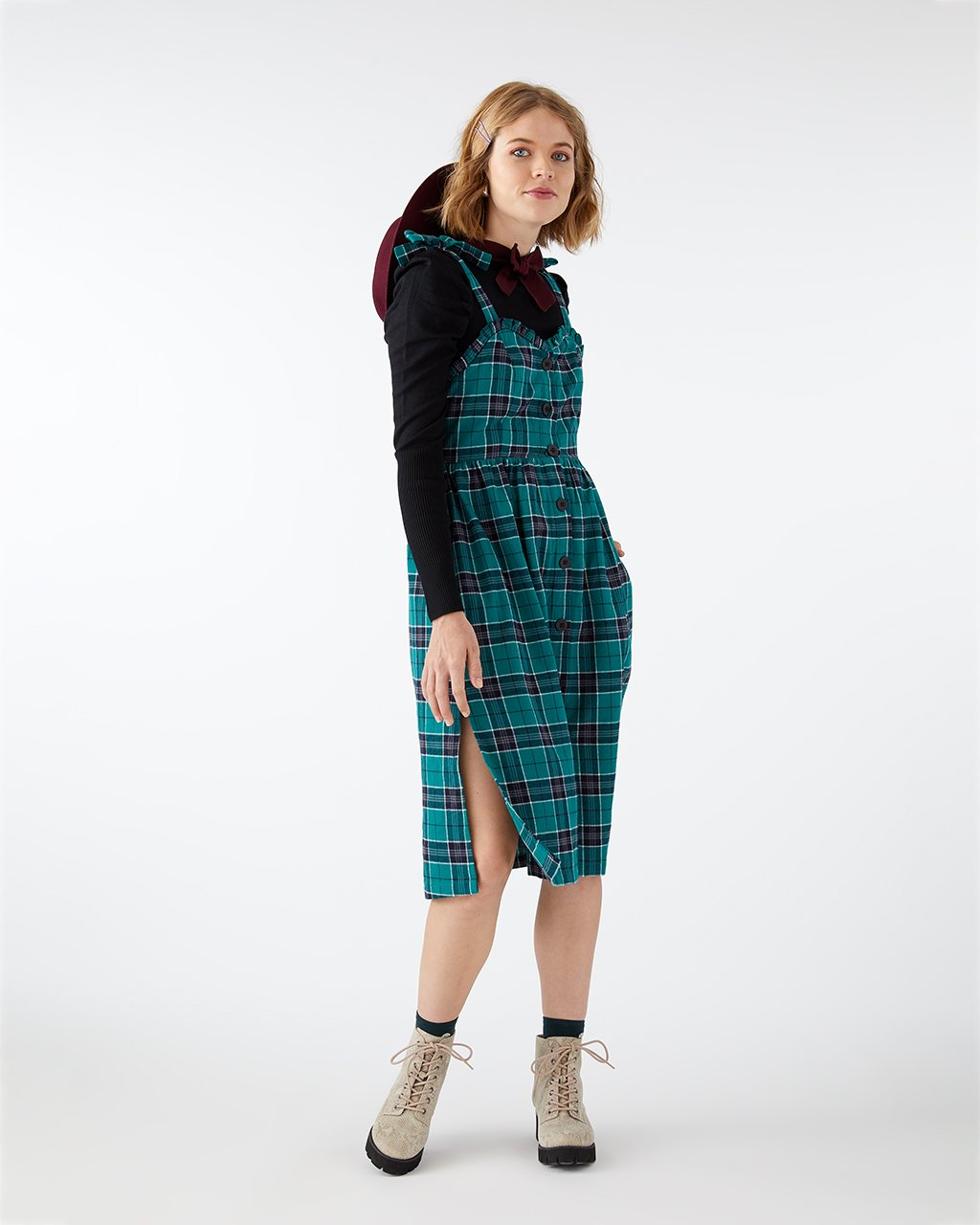 No need to be envious, this plaid mini dress from Lazy Oaf can be all yours. It’s got a midi length, self-tie shoulder straps, a ruffled trim around the top, and (most importantly) pockets at the sides.