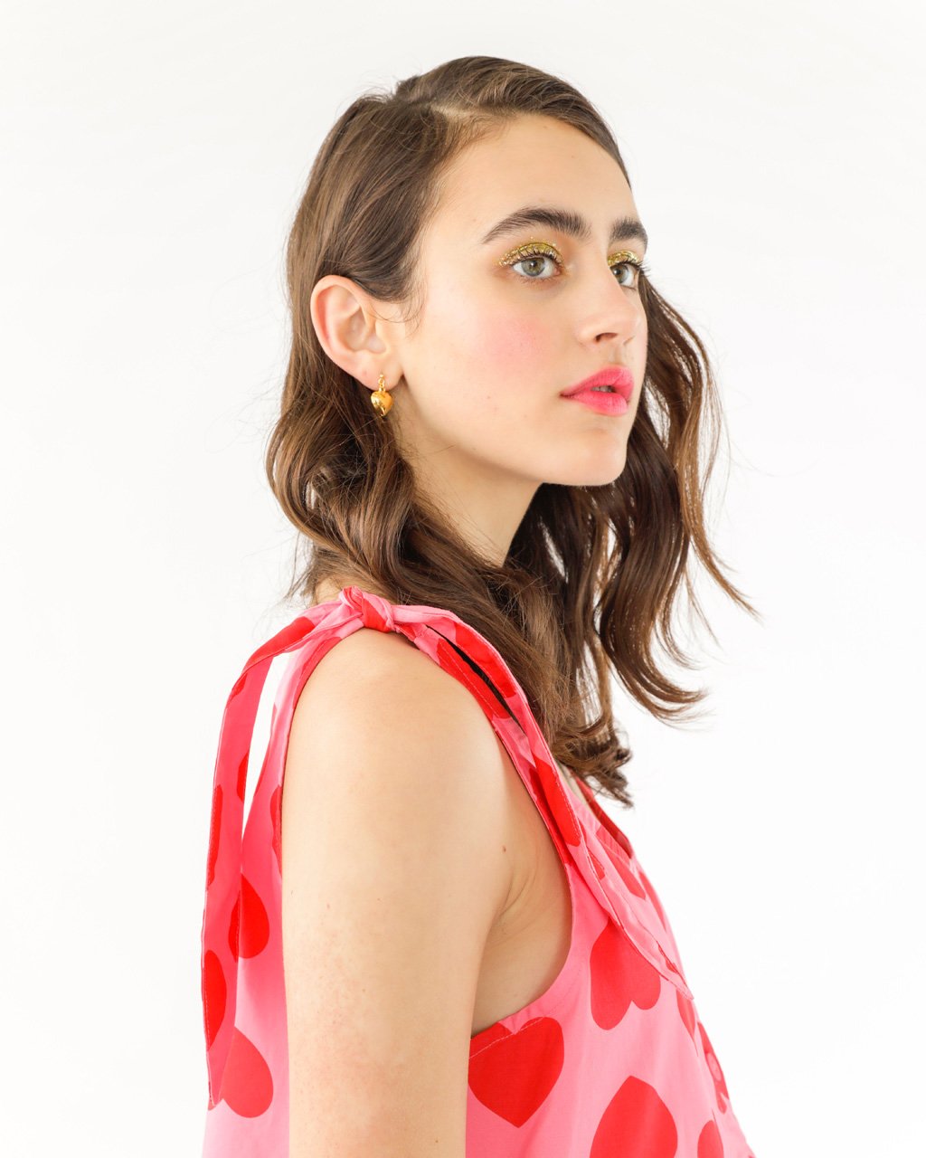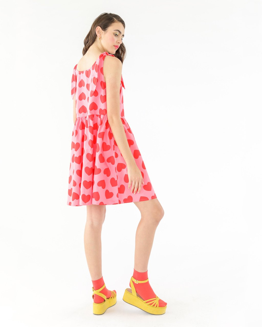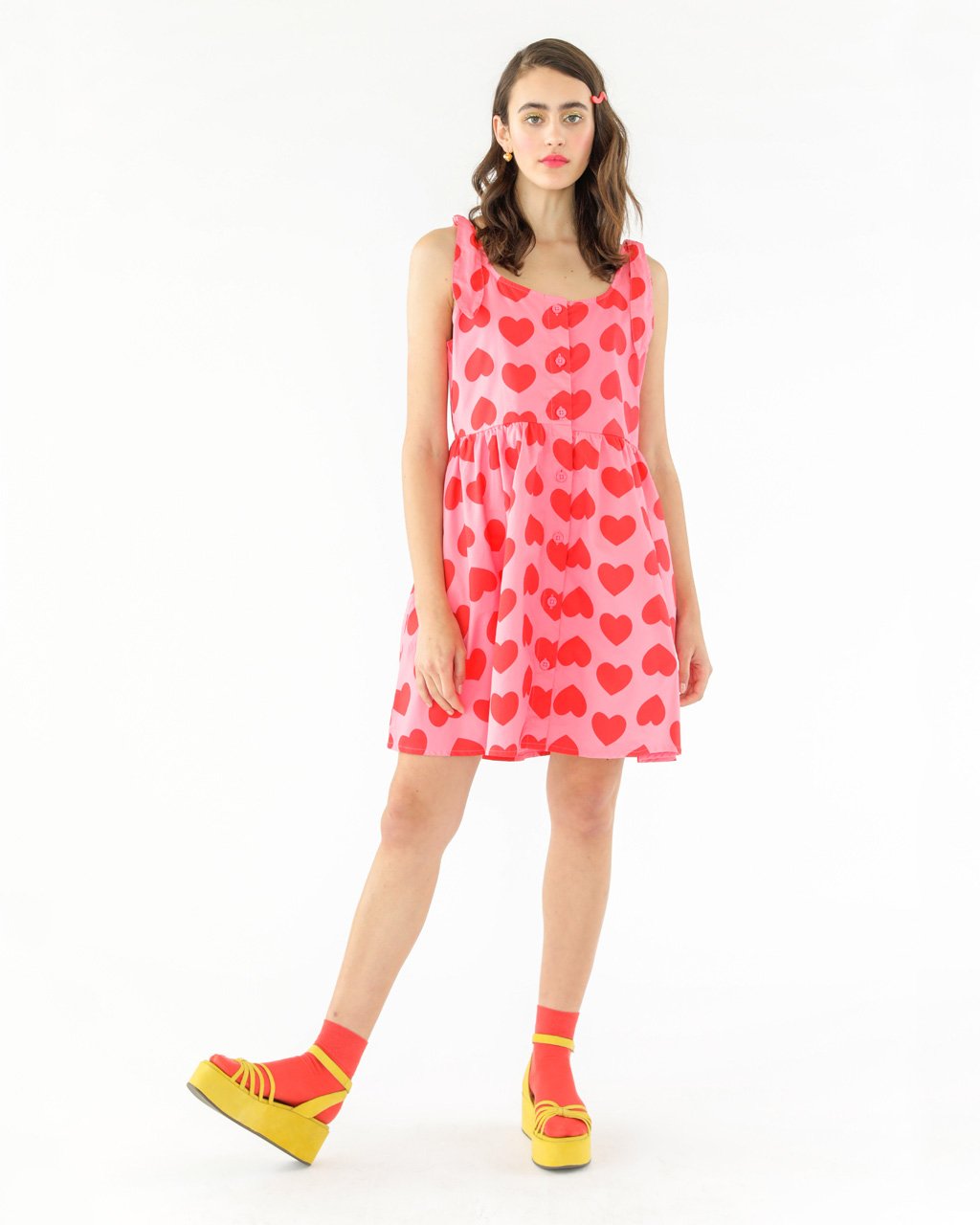 We heart a good heart-print dress—naturally. This one by Lazy Oaf has a fun oversized fit, adjustable tie straps, and a button front