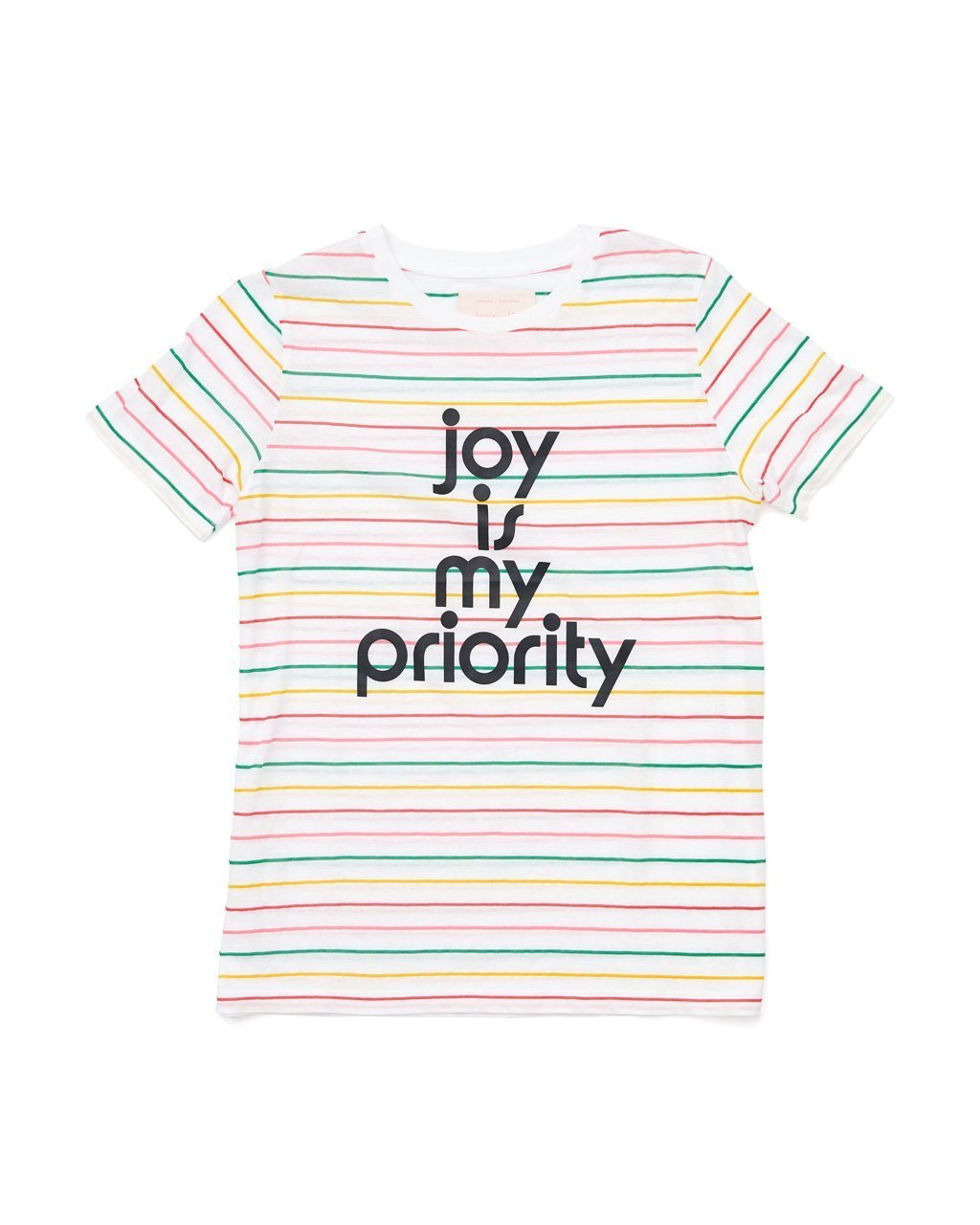 Bring some extra joy to your outfit with this tee. It has a classic fit, colorful stripes, and a design that’ll remind you what’s important to you.