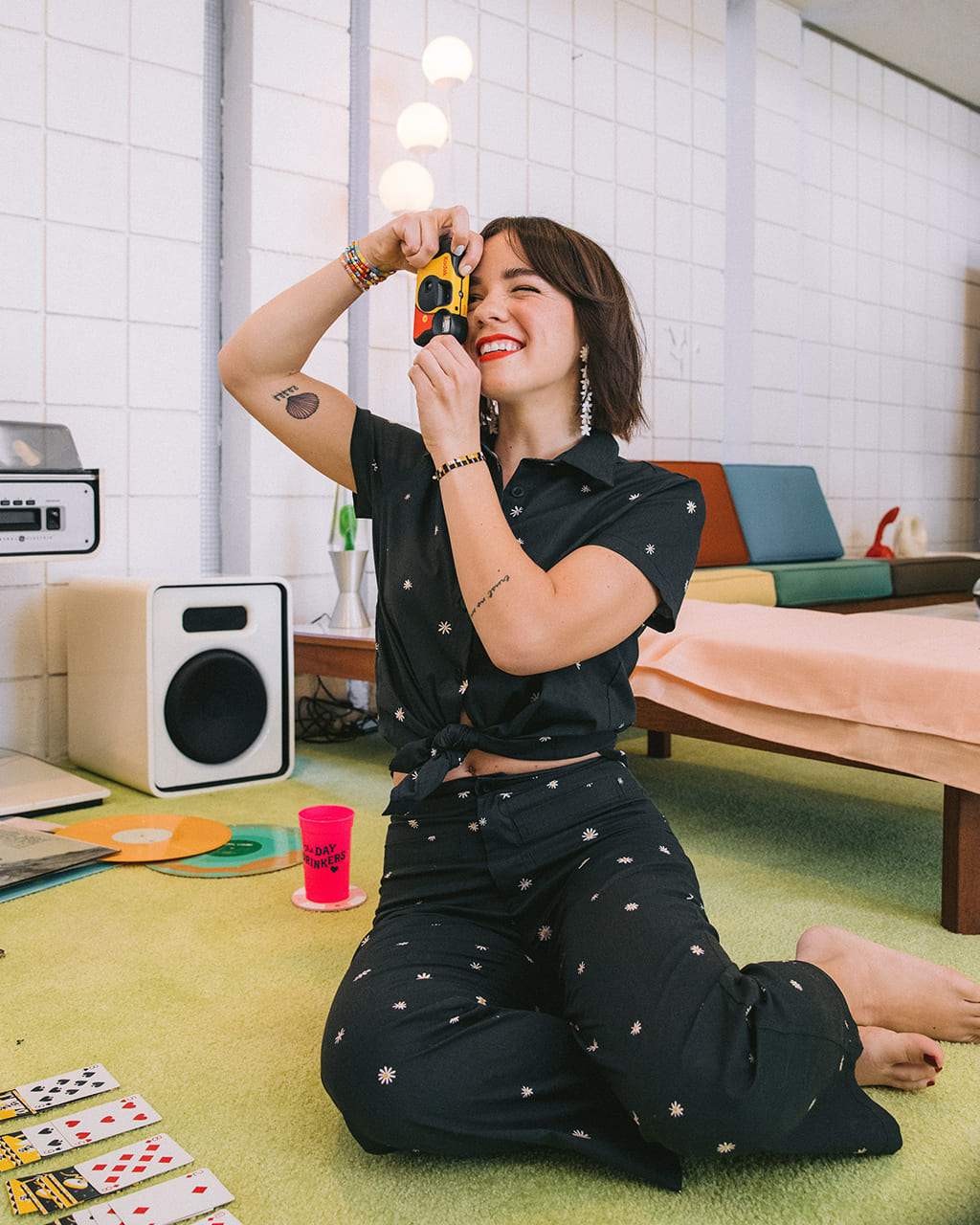 We loved our daisy printed tee so much that we had our friends at Nooworks make this button-down version so we can wear those same daisies to every event regardless of dress code. Even better, there are matching pants so we can create a makeshift jumpsuit look. Basically, if you invite us anywhere, expect to see a lot of daisies.