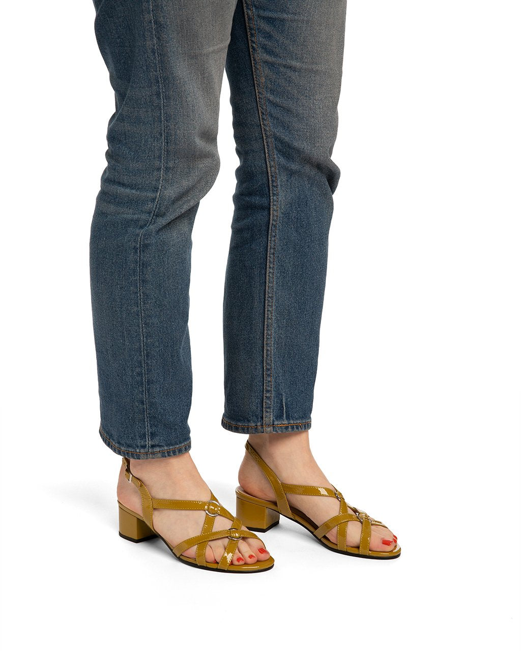Kimora is an updated vintage classic, made crisp and modern in Mustard patent and metal hardware. Perfect for summer, the soft straps flatter the foot, and the pop of color is perfect for styling. Padded, comfy and super easy heel, the Kimora is a new office fave.