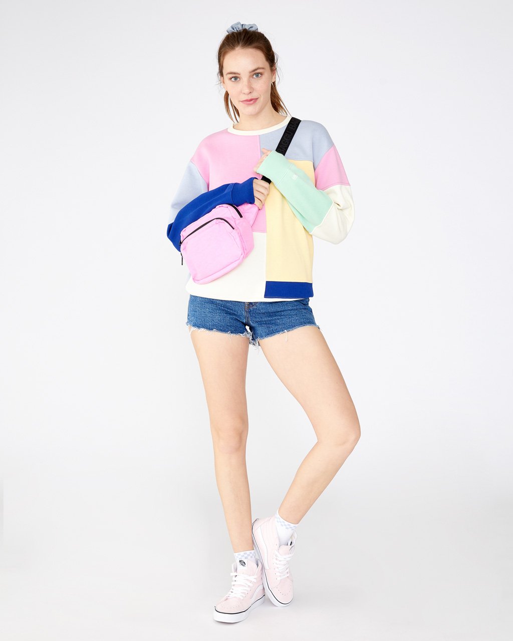 When you can’t decide what you color you want to wear, just go ahead and wear a few. This color-blocked sweatshirt from Vans has an oversized fit and panel seaming.