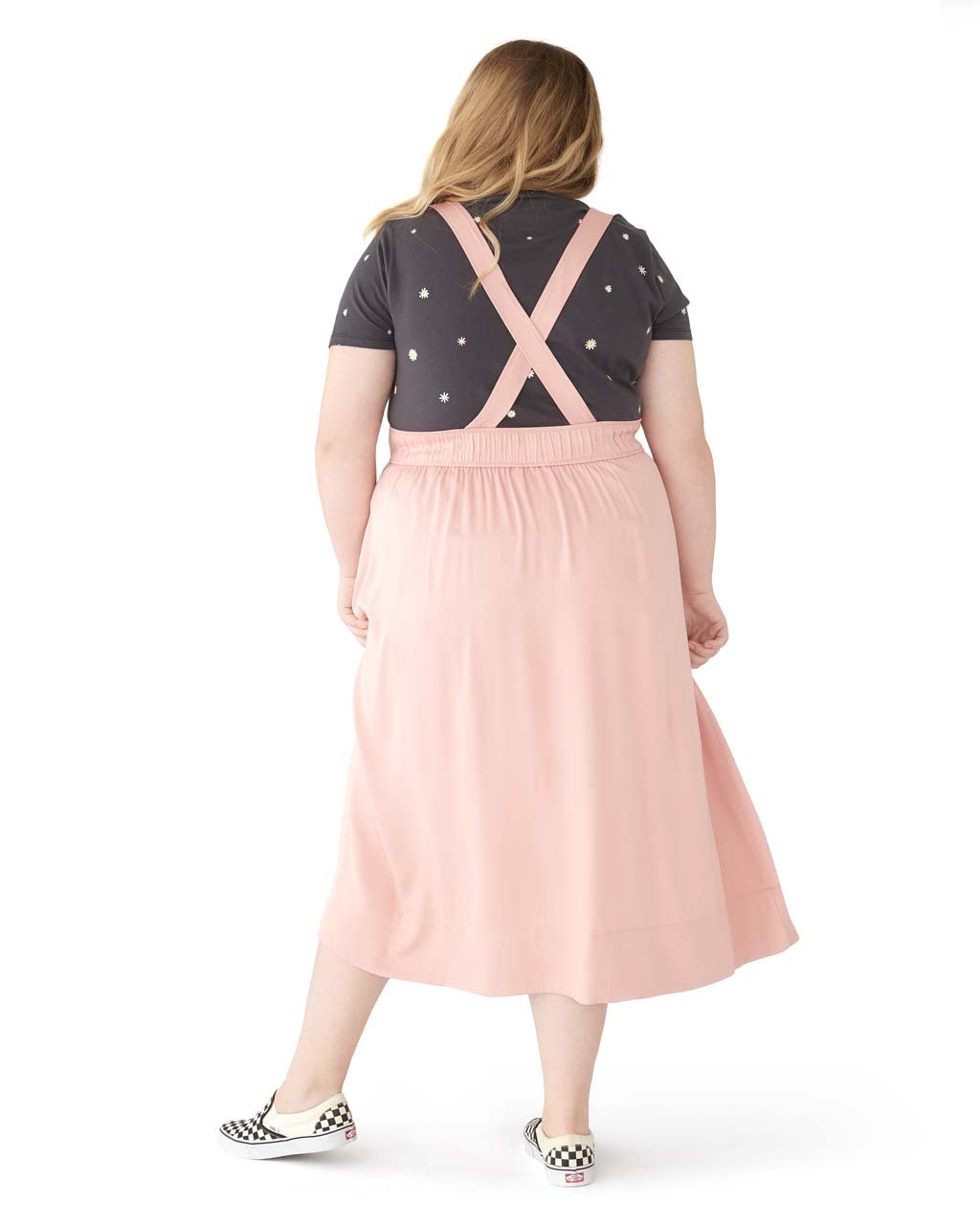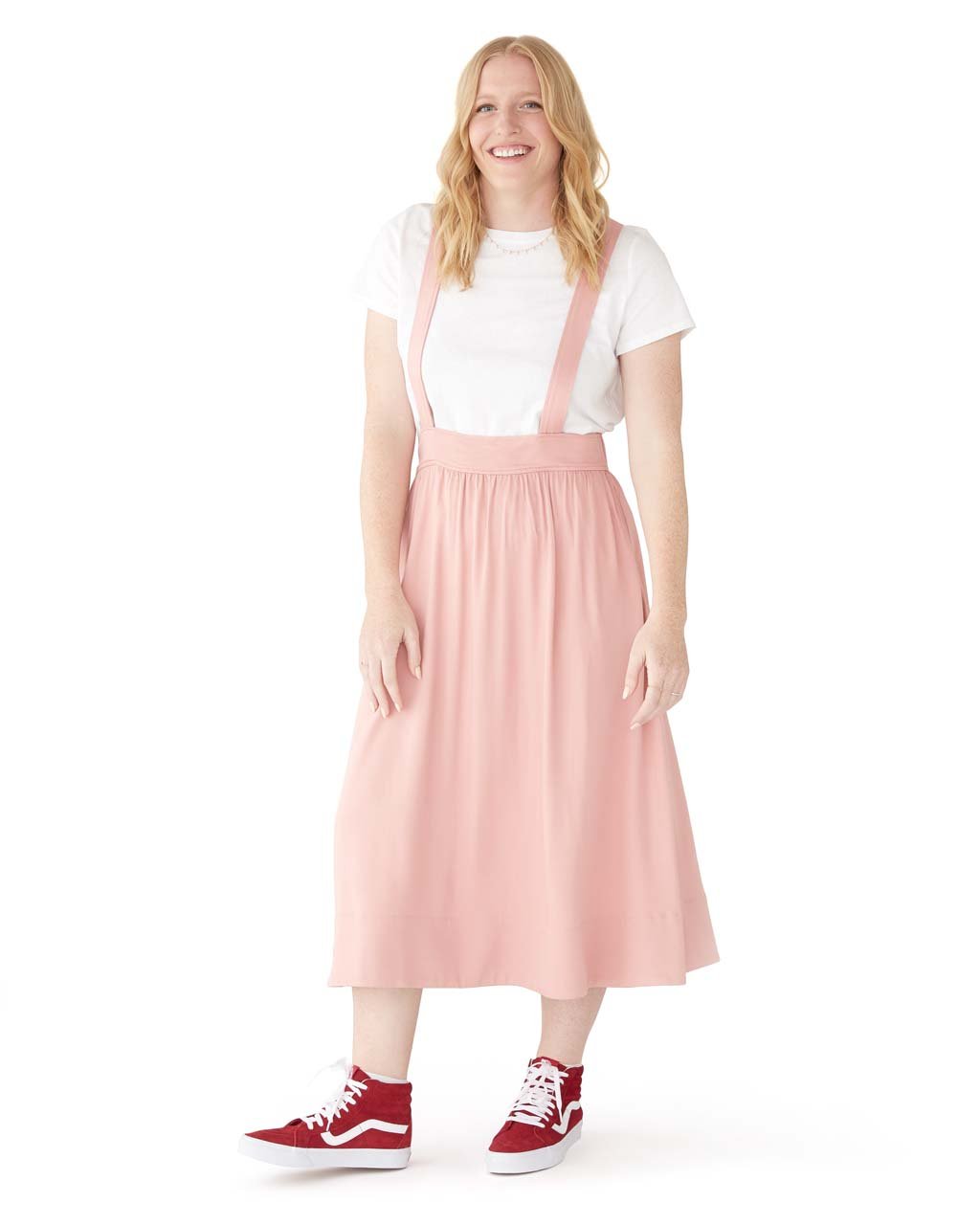 Believe it or not, you helped design this pinafore skirt. Because we’ve never made clothes like this before, we asked for some feedback and everything you had to say led to this skirt right here! It’s got flexible sizing that looks (and feels!) great on everyone, a waist that’s elastic in the back and lays flat in the front, straps that can be worn straight or crisscrossed, extra buttonholes so you can adjust the length of the straps, and pockets(!).