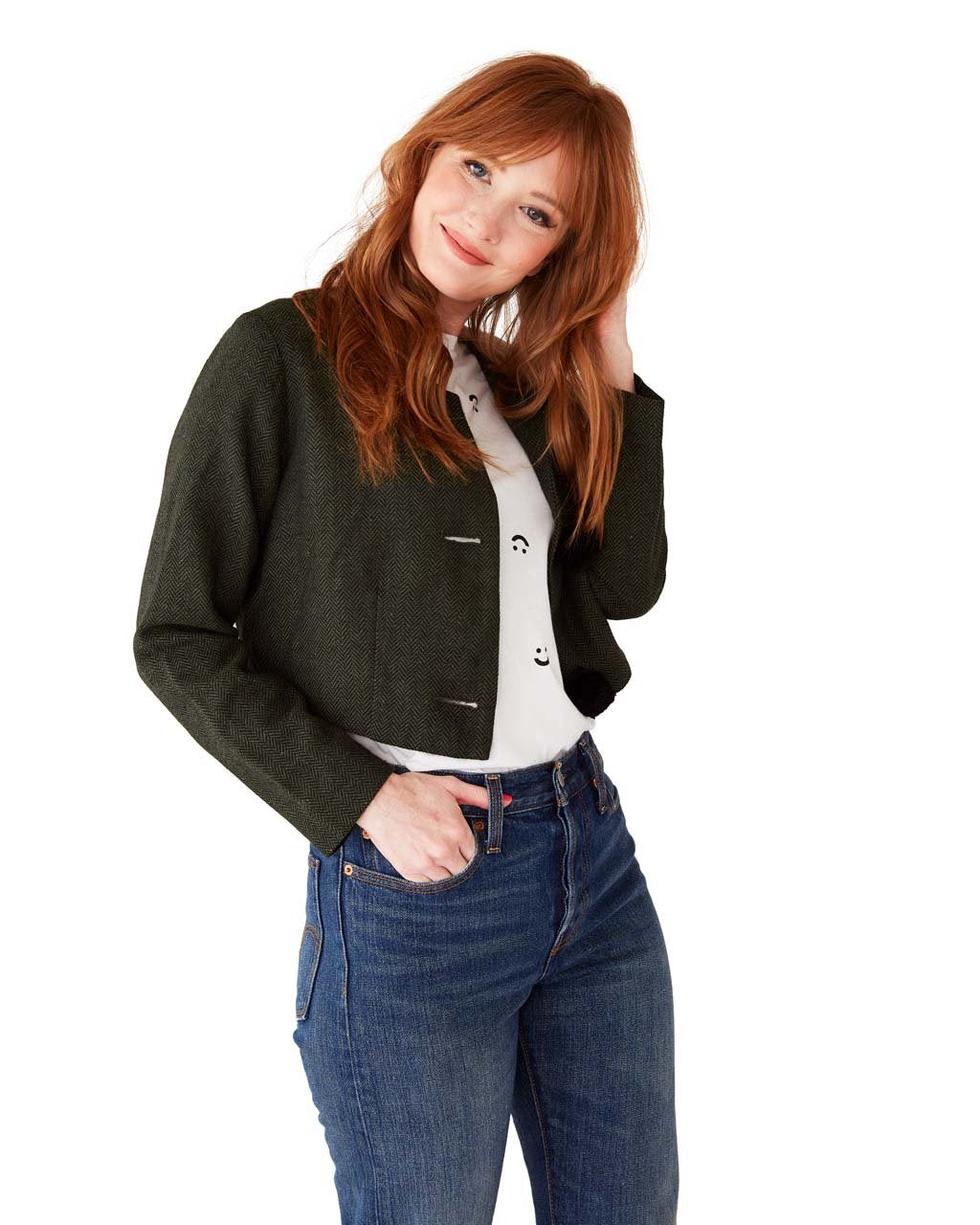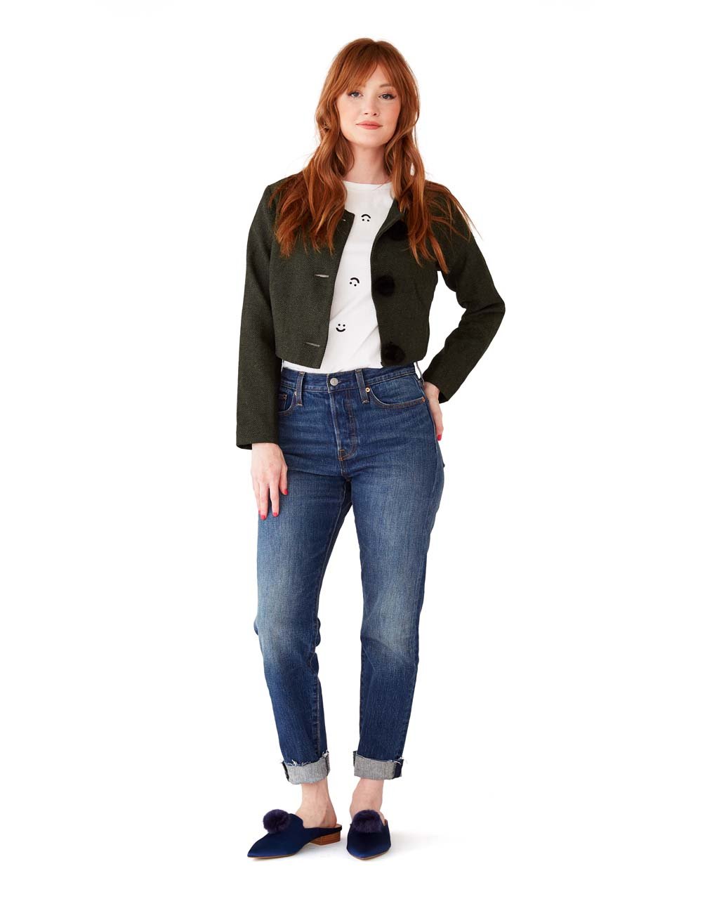 We’re pretty sure Samantha Pleet is reading our diary. Seriously, just the other day we wrote about how we wanted a cool cropped jacket for fall and just look at this! This emerald tweed jacket has extra large cotton pom pom buttons and the cutest lining on the inside. Yeah, we’re never taking it off.