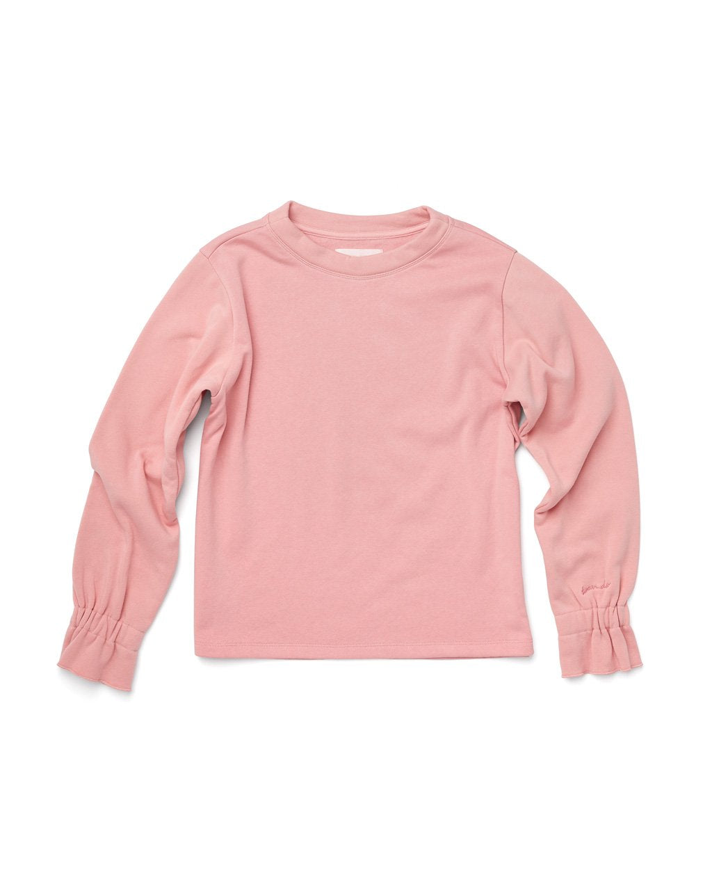 Our second favorite kind of ruffles are the ones on this sweatshirt. (The first are the ones on the potato chips.) This soft, comfortable long sleeve ruffled sweatshirt has a relaxed fit, slightly cropped length, and an embroidered ban.do logo on the sleeve.