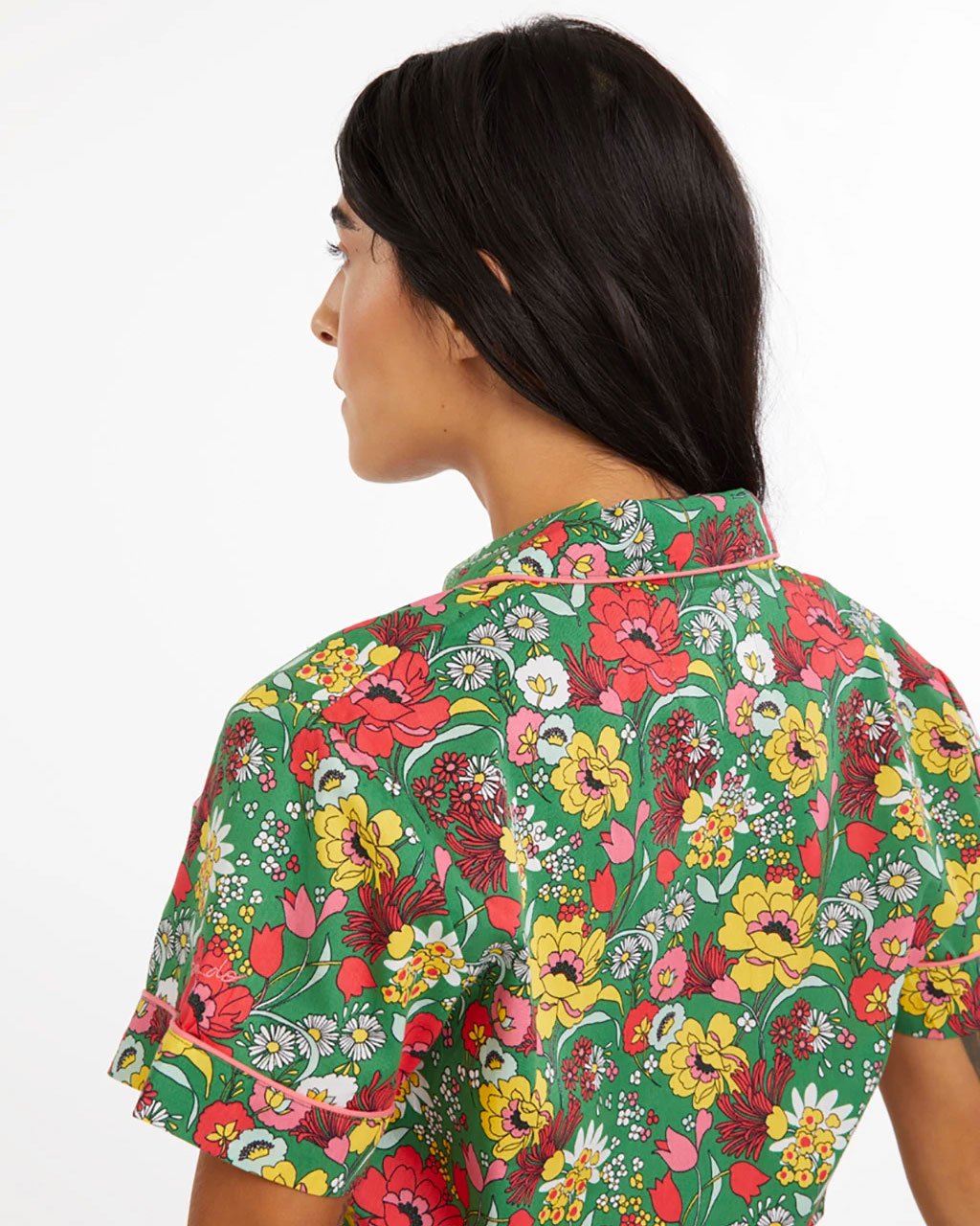 Short Sleeve Leisure Shirt - Emerald Super Bloom