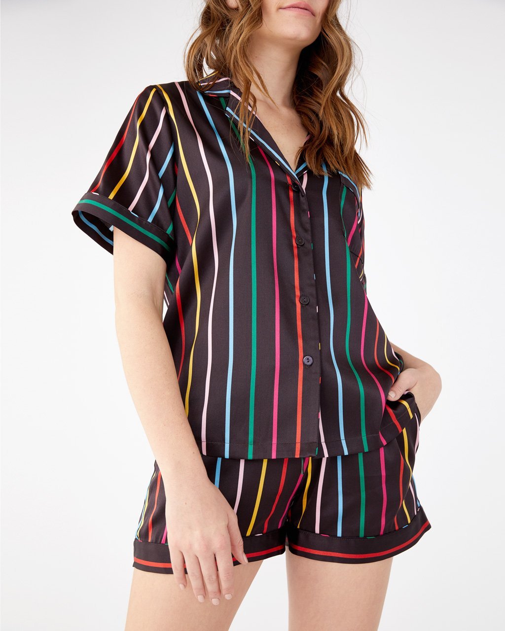 Got silk? If you thought the ban.do Leisure Club was great before, just wait until you get your hands on this short sleeve leisure shirt made of silk. It’s got a disco-inspired striped pattern, a pocket perfect for a small remote (or to catch the popcorn that misses your mouth), and silk so soft you’ll never wanna sleep in anything else.